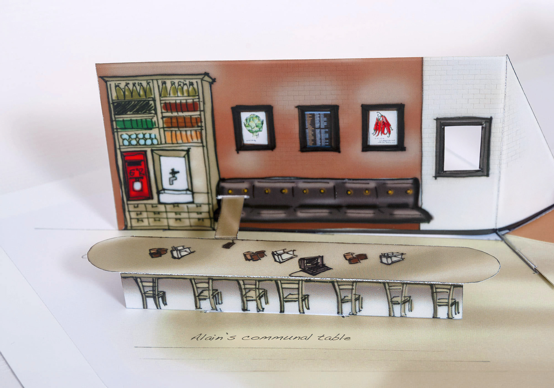 This pitch presented an opportunity for a 'bread offer' at Heathrow Terminal 2. A wooden box was crafted using their branded trays, housing two printed booklets. The first booklet, titled "Who We Are," provides an overview of Le Pain Quotidien. The second booklet, "Our Concept at T2," showcases the design proposal, featuring a pop-up presentation of the concept.