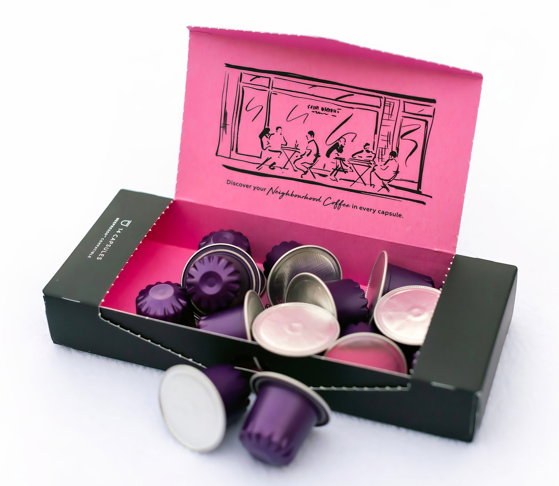 The labels for Saint Espresso have evolved over the years. What started as a detailed design has gradually become simpler and streamlined.